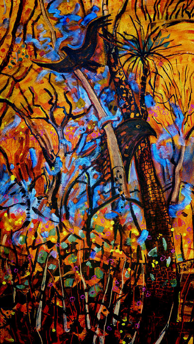 Everywhere in the top end, the slow burn creeps through the understory, staining the red land blue with wisps of smoke, and the whistling kites keep watch.