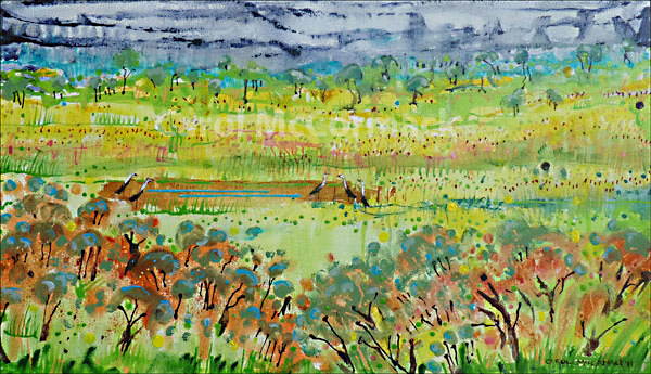 materials: acrylic and ink on canvas. Stretched ready to hang, as is, or may be framed |