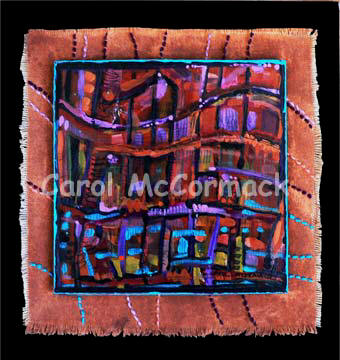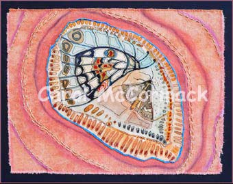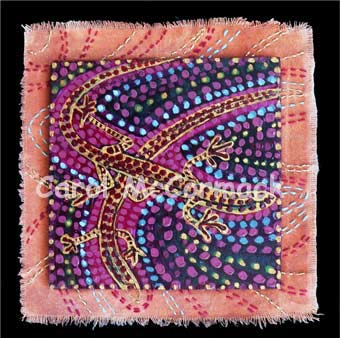 on board mounted on cloth rubbed with natural pigment, stitchery