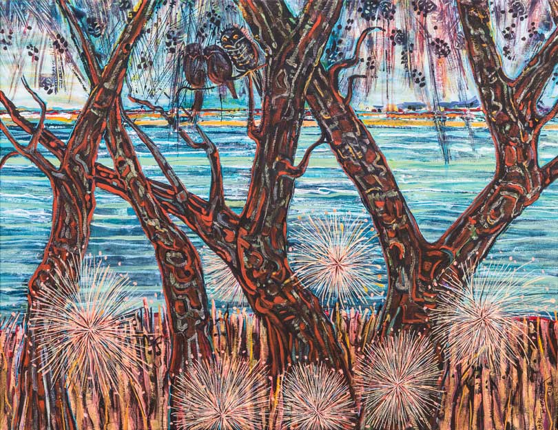 I have a thing about the starburst shapes of the spiky beach Spinifex that grows along the shores. Together with the horsetail casuarina and families of Frogmouths, they say ‘Woodgate’ to me.