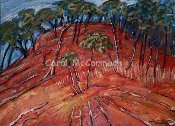 This big oil is another result of playing with the many versions of images brought back from Dinnebarraba Hill. I rarely use oils now, I am so allergic to turps!