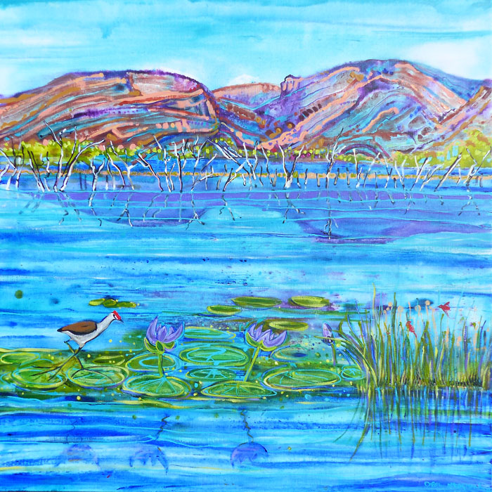 Man made as the first stage of the Ord River Scheme, Lake Kununurra had very practical beginnings but is a very beautiful place, and the bird life will tell you it's a good place to live. The rock formation, officially Carlton Ridge, is popularly known as Elephant Rock, or The Sleeping Buddha, depending on your view point.
