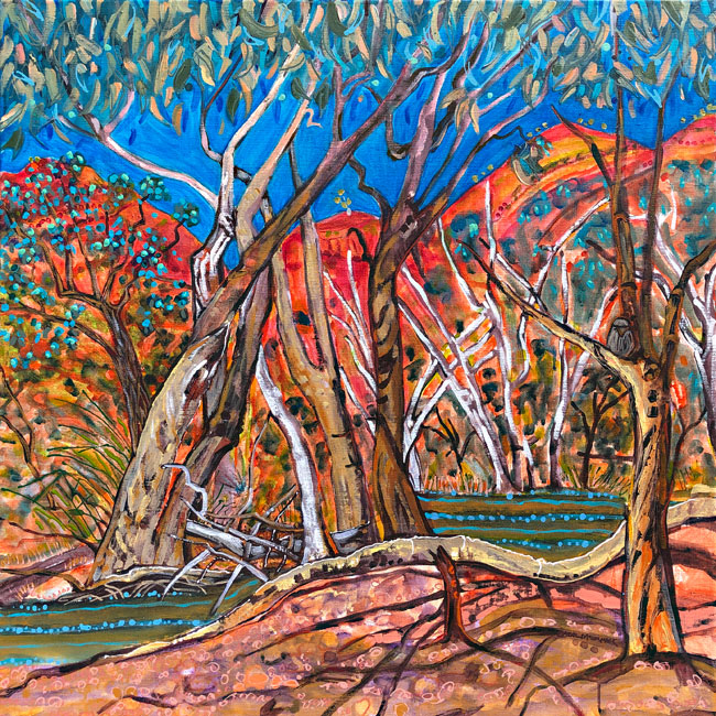 Painted at El Questro Station at a private camp on the Pentecost River. Running water, superb scenery, plenty of space to spread out and absorb this beautiful area.