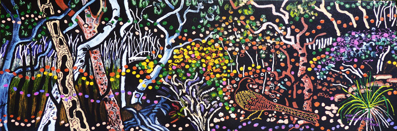 eucalypts, pandanus, acacia and magenta calytrix. s