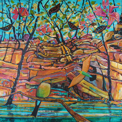 falls, Rainbow Bee-eaters flashed their colours against the rock walls,